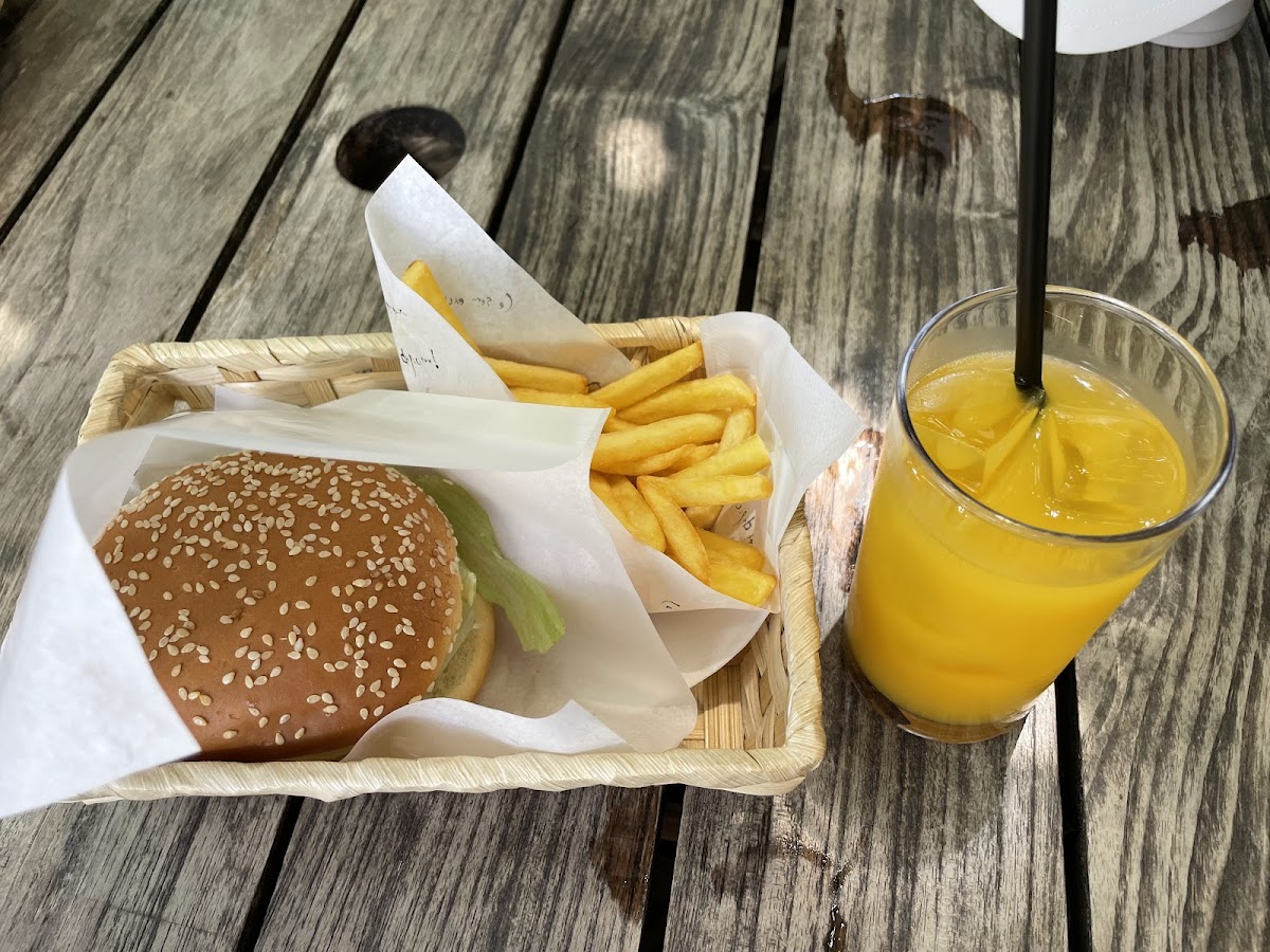 The café is renowned for its delectable burgers, with the shark burger being a standout favorite among patrons. However, for those looking for an equally satisfying option, the メカジキバーガー (Mekajiki Burger) is simply irresistible. Cooked to juicy perfection, the fish fillet is enveloped in a fluffy bun, while freshly fried potatoes complement it beautifully. One reviewer aptly described the experience, saying it's a "delightful start" to any visit to Ogasawara, especially when enjoyed while gazing at the serene sea views from the open windows.
